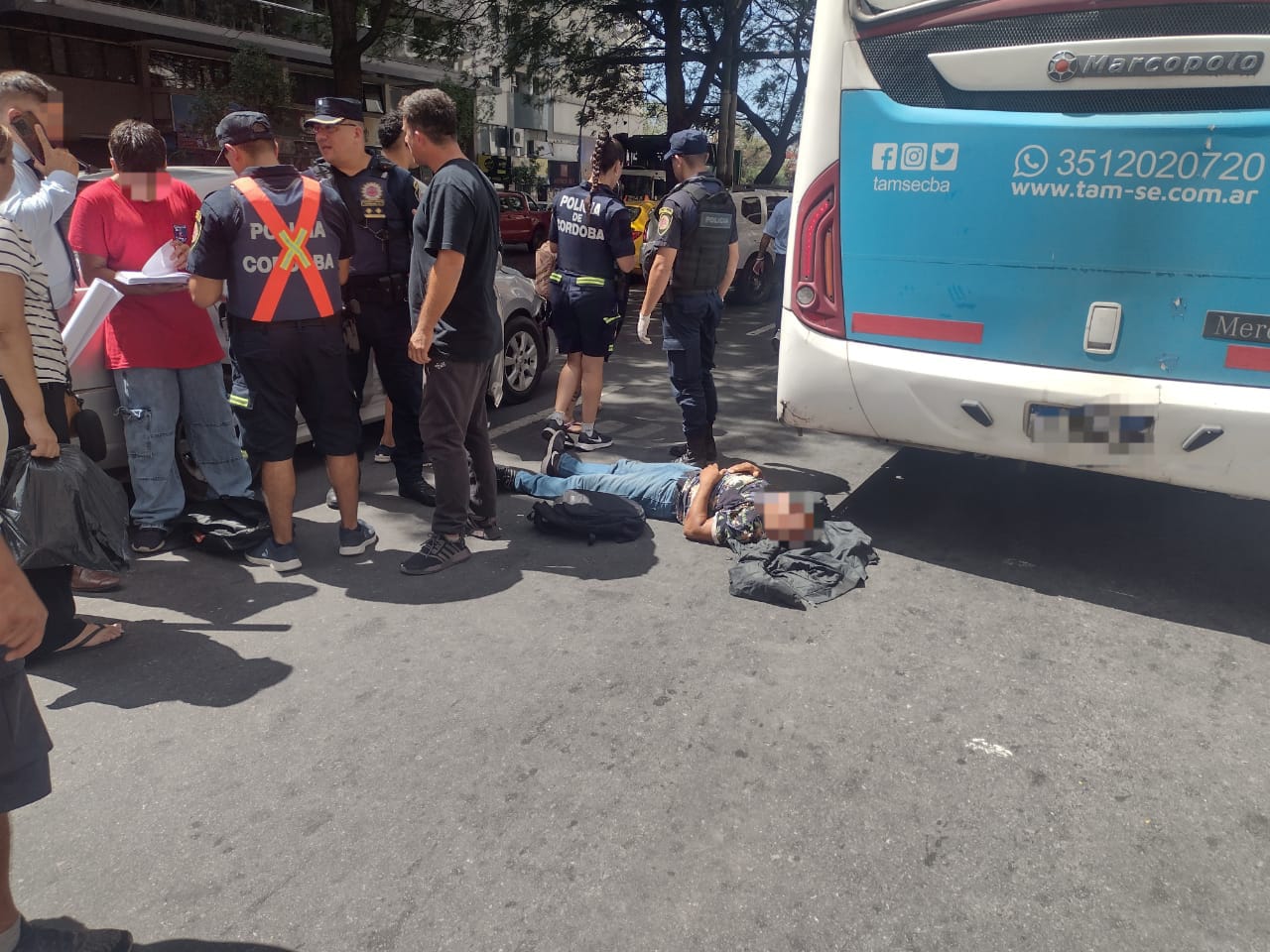 La Policía informó que un rato antes, en Bv. Illia y Tránsito Cáceres, estas personas habían sustraído un teléfono celular a un pasajero de un colectivo urbano y, al intentaron huir cuando un automóvil impactó al mayor de ellos.