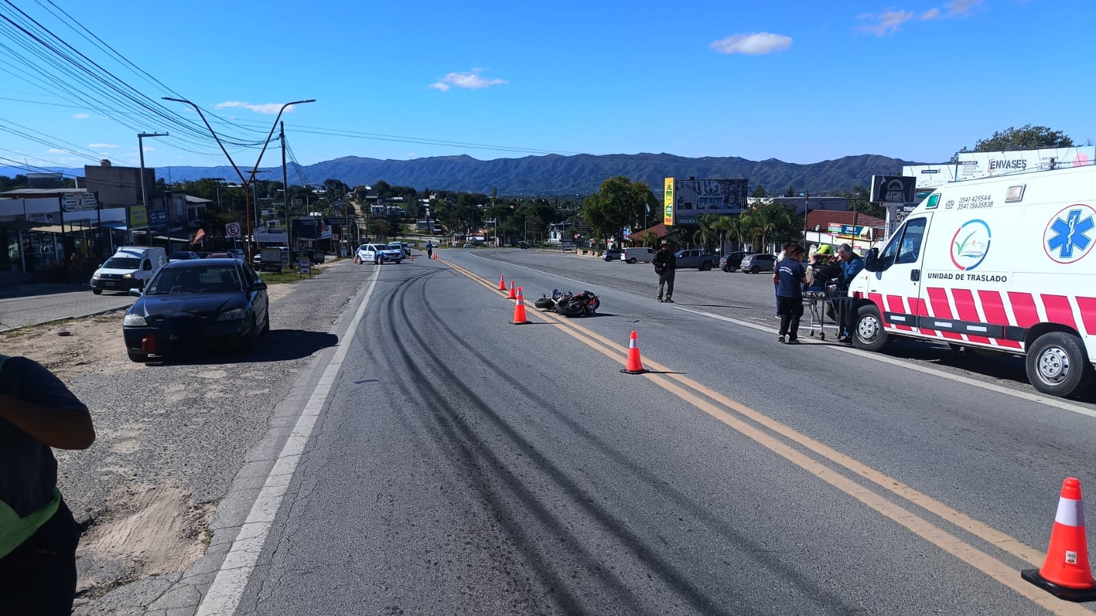 Tras el impacto, se hizo presente en el lugar una ambulancia, cuyo personal médico diagnosticó politraumatismos en el conductor de la moto. Debido a la gravedad de las lesiones, fue derivado al Hospital Domingo Funes para una mejor atención.