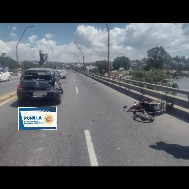 Un automóvil y una moto protagonizaron un fuerte choque en la avenida Uruguay este domingo al mediodía en el puente Uruguay.