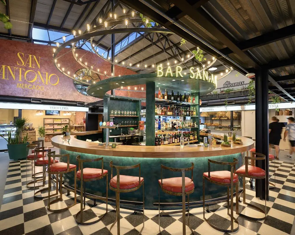 En la idea de un mercado español, tiene carnicería, verdulería, pescadería, vinoteca y delicatesen. Se conjugo todo esto con una pizzería, un restaurante característco, tablas de fiambre y picadas. También tiene una barra que está ubicada en el centro del mercado en donde pueden degustarse los mejores tragos del mundo.