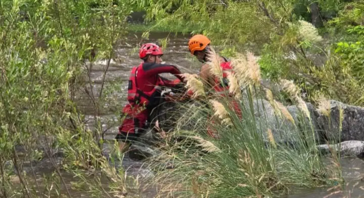 El hecho ocurrió alrededor de las 16:57 en la zona de calle Perito Moreno esquina Lisboa, a pocos metros del puente Eduardo Terzi de Playas de Oro. La corriente ya venía fuerte y el animal permanecía en el medio del río, rodeado de agua en movimiento, lo que hacía imposible que pudiera salir solo.