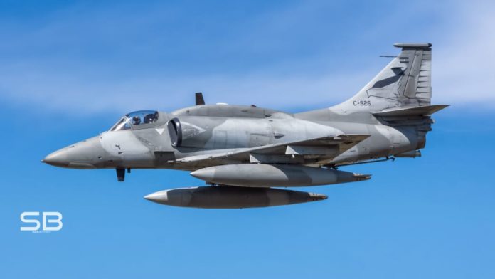 La nave es un McDonnell Douglas A-4AR pertenece a la V Brigada Aérea de Villa Reynolds.