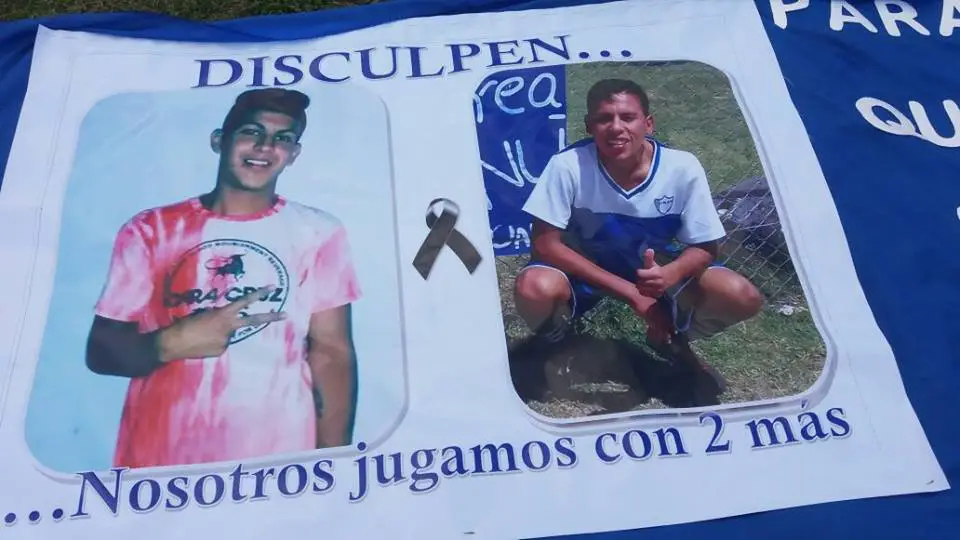 El Club Deportivo San Nicolás, en el que jugaban al fútbol los dos chicos fallecidos el fin de semana tras un siniestro en la Colectora, los homenajeó con un cartel en la previa de un partido.