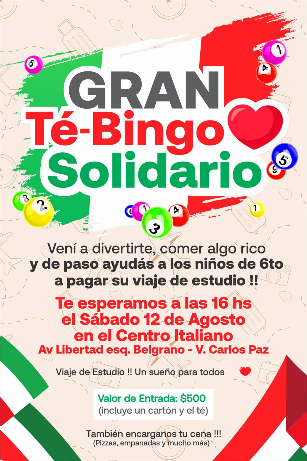 Los papás de los alumnos de sexto grado del Instituto Dante Alighieri de Villa Carlos Paz, invitan a un Té Bingo que se concretará este sábado para colaborar con el viaje educativo que realizarán los chicos a la provincia de Salta.