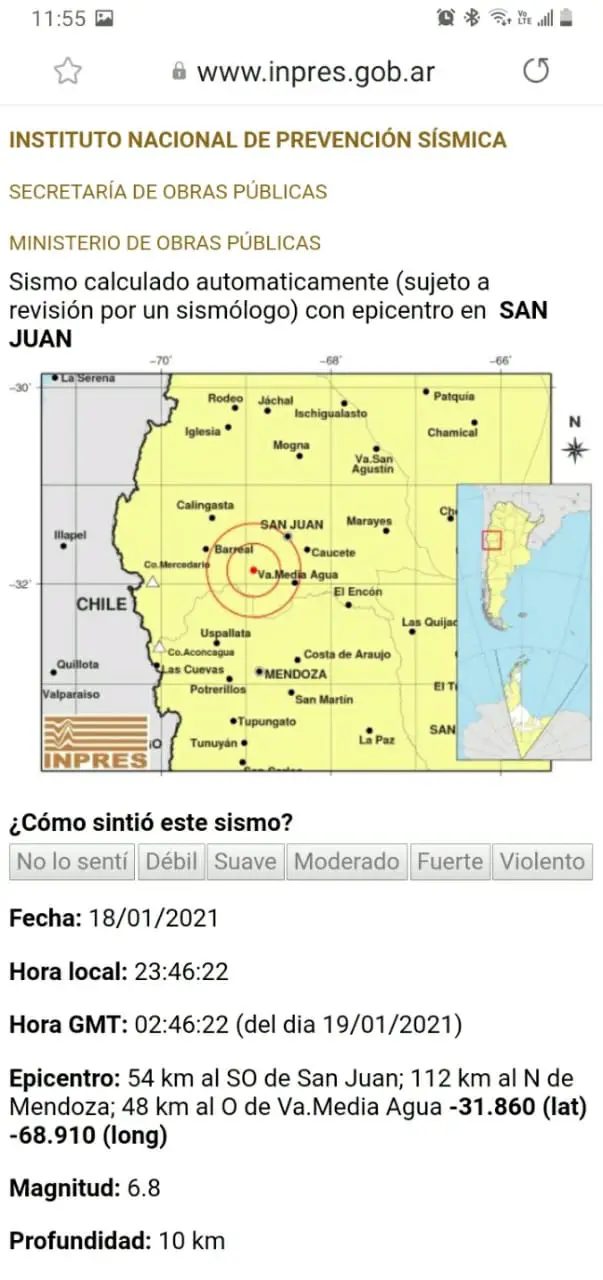 Los primeros reportes indican que fue de 6.8 grados en la escala de Ritcher y tuvo su epicentro en San Juan.