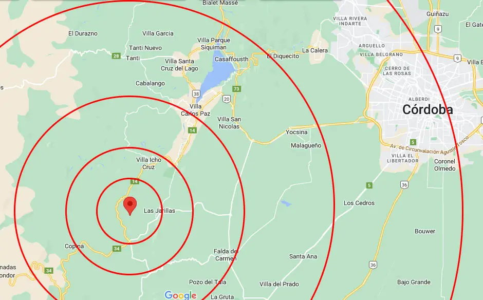La coordenadas del reporte del INPRES ubican el epicentro en la zona de montaña ubicada entre Las Jarillas y Copina a pocos kilómetros de las ciudades del sur del departamento y a solo 10 kilómetros de Carlos Paz. El mismo se registró a unos 25 kilometros de profundidad y su magnitud confirmada fue de 3.1 grados.