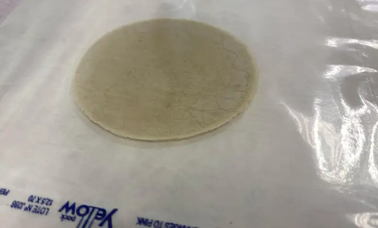 “Este tratamiento es una mezcla de varios antibióticos que se hizo en conjunto con el servicio de bacteriología del Laboratorio de Alta Complejidad de Misiones (Lacmi). Al día siguiente, tomamos este tejido, lo sacamos de la mezcla de antibióticos y se vuelve a realizar un lavado. Ahí se separa lo que es la membrana de la placenta y empezamos a maniobrar solamente la membrana”, explicó la farmacéutica.