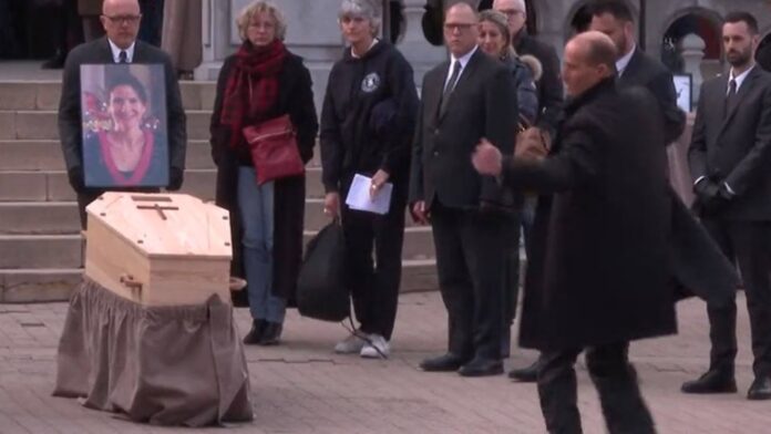 En Biarritz (Francia), el viudo de Agnes Lassalle, desplegó un emocionante baile en el funeral de su esposa asesinada. El hombre se despidió junto a amigos y familiares de la su mujer, quien era docente y la semana pasada fue asesinada por un alumno en plena clase.