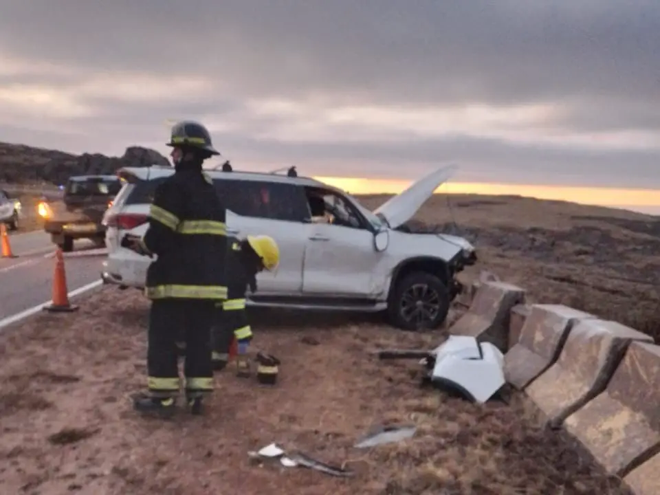 Minutos antes de las 8, por motivos que intentan esclarecerse, una Toyota SW4 tripulada por un matrimonio oriundo de la provincia de San Juan, colisionó contra el muro de cemento que separa la calzada de la barranca.