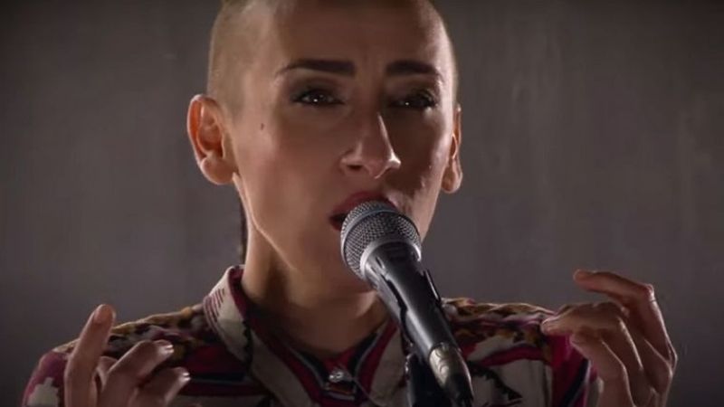 La modificación en la letra de la canción patria se escuchó al final. “Y las libres del mundo responden”, cantó y luego: “juremos con gloria vivir”.