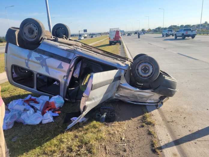 En horas de la mañana de este lunes, en Av Circunvalación km 32 (altura de Bº San Alberto), por causas a establecer, una mujer de 44 años perdió el control del vehículo Peugeot Partner que conducía, y tumbó sobre el cantero central.