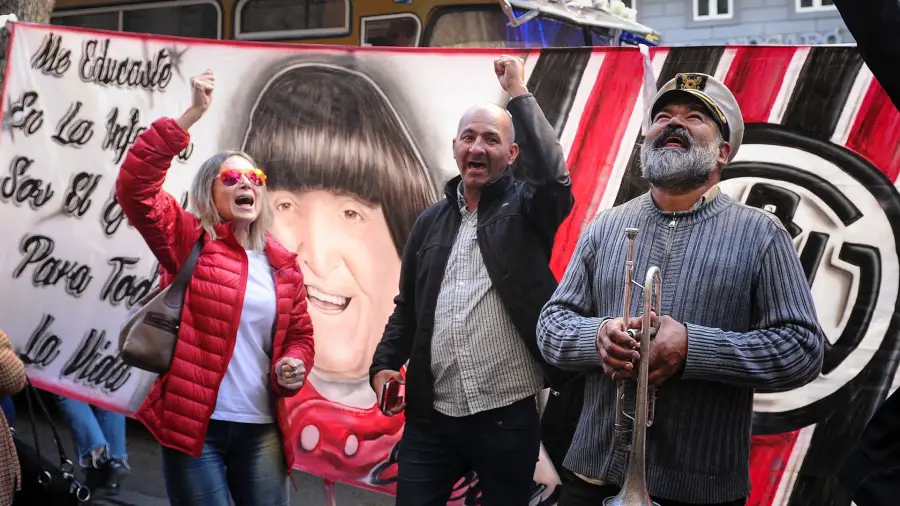 También se desplegaron sobre la avenida dos banderas de Chacarita con el retrato de Balá, pintadas por Sebastián, fanático del comediante y de ese club de fútbol.