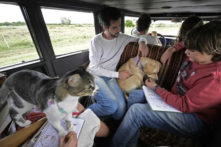 Desde el techo, cae una lona que les da privacidad adentro del vehículo, donde duermen los padres. Llevan el maletero como cocina y en el motor pueden cocinar huevos y salchichas o calentar agua. Debajo de los asientos se guarda la ropa y los útiles. Como si fuera un caracol, el coche antiguo sirvió por muchos años de casa familiar.