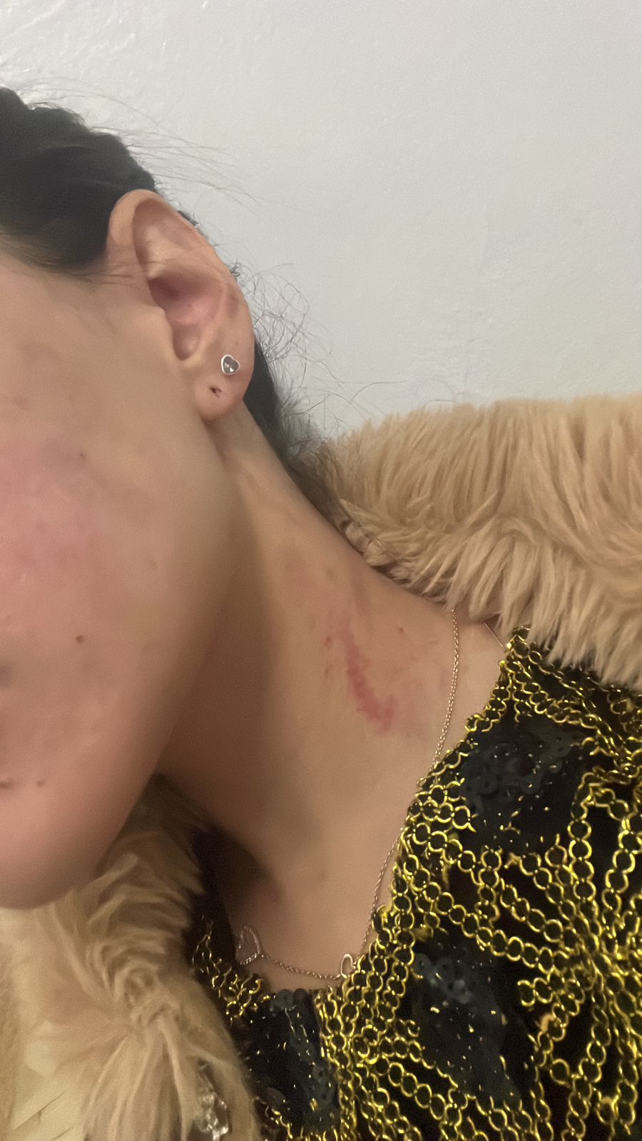 Y contó: «El último episodio fue el sábado, en un casamiento del mejor amigo de él. Se emborrachó y empezó a preguntarme a quién estaba mirando. Le molestó que usara el celular y me acusó de hablar con otros hombres. Me pidió el teléfono, no se lo di y me dijo que nos fuéramos a su camioneta. Apenas subí, me empezó a pegar cachetadas en el lado derecho; por eso tengo el ojo morado, la foto que te mandé».