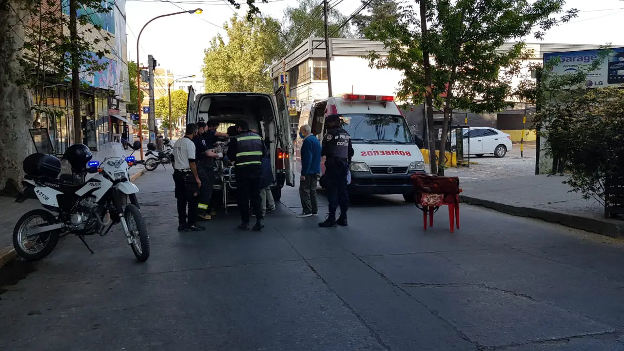 La mujer estaba consciente, pero debió ser trasladada al hospital municipal por un leve golpe en la cabeza. Estuvo restringido el tránsito vehicular en pleno centro por unos minutos.