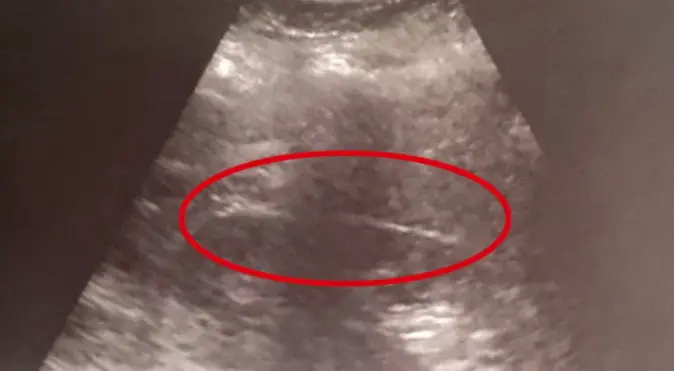 Finalmente, le realizaron una ecografía en el estómago, donde se ve claramente el objeto dentro de su cuerpo. Luego, le hicieron una endoscopia superior, en la cuál uno de los médicos intentó sacarlo pero no lo logró.