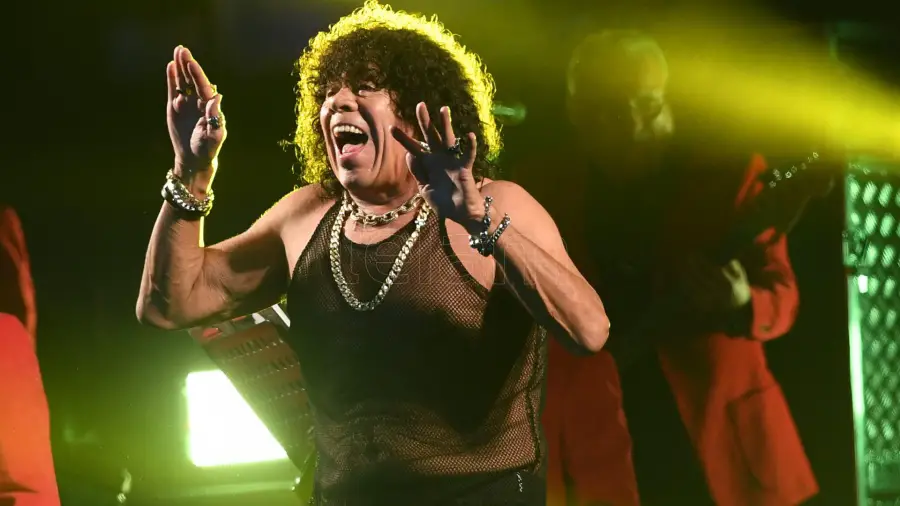 El cantante y compositor, de 71 años, actuó gran parte del recital con una remera transparente sin mangas y un pantalón negro con arabescos amarillos mientras la temperatura en la Ciudad de Buenos Aires era menor a los 10 grados.