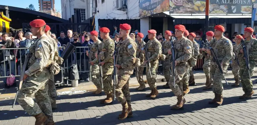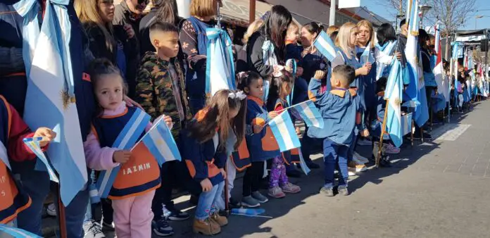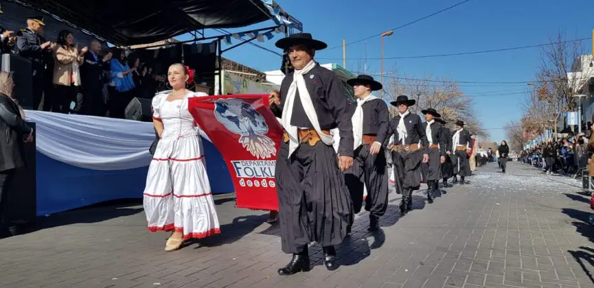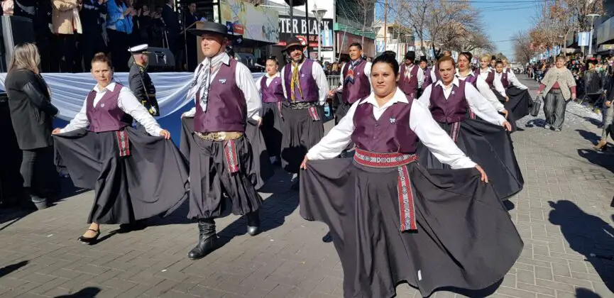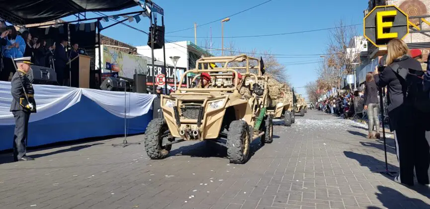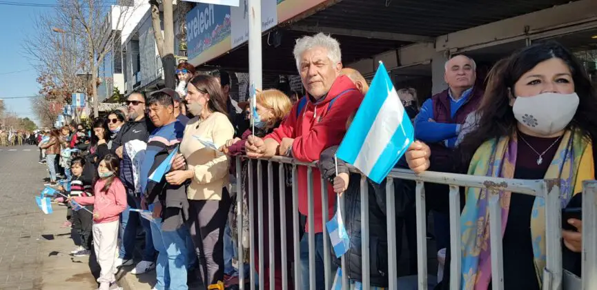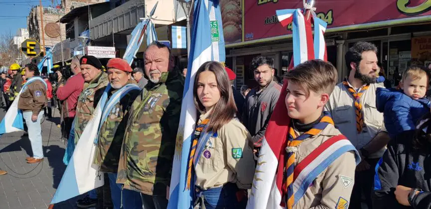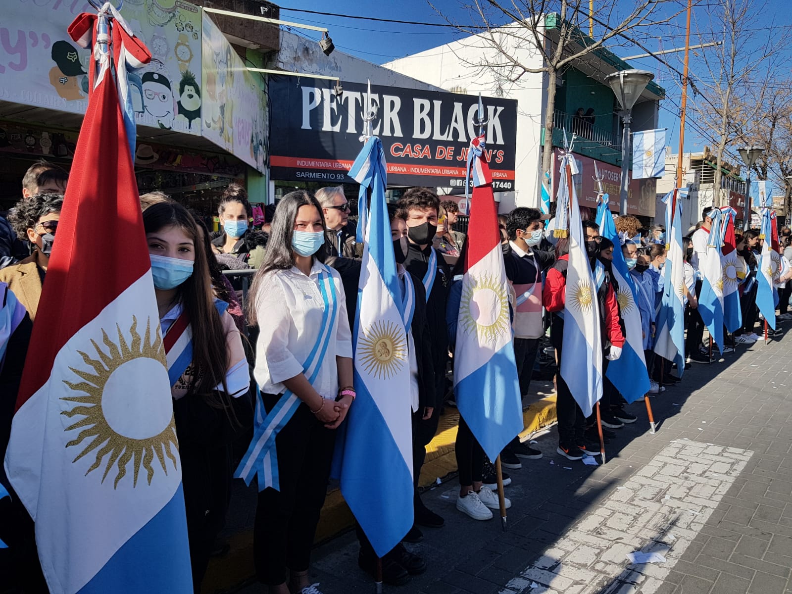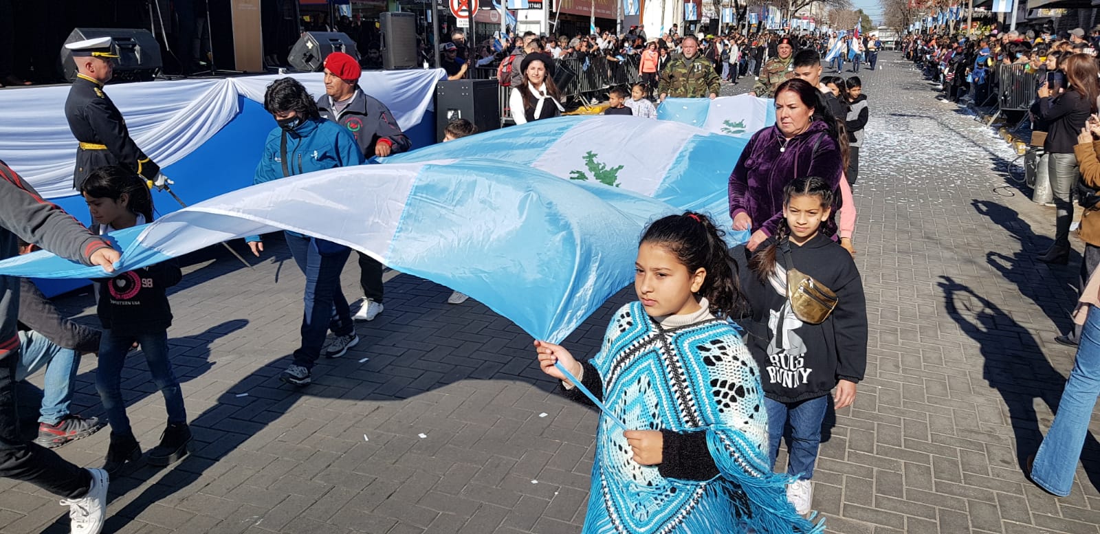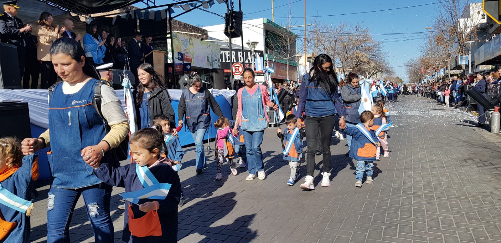 Miembros de las Fuerzas Armadas, la Policía de la Provincia, Bomberos Voluntarios, Veteranos de Malvinas, alumnos de las escuelas locales y fuerzas vivas participaron del desfile en las calles del centro de la ciudad.