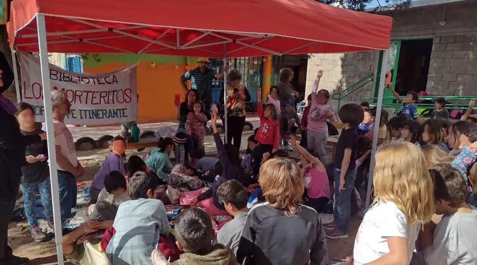 Los Morteritos es una biblioteca popular itinerante de Santa Cruz del Lago y Estancia Vieja, que surgió hace un poco más de 2 meses como iniciativa de vecinos del lugar, quienes notaban la ausencia de propuestas artísticas y culturales para los niños y las niñas de la zona.
