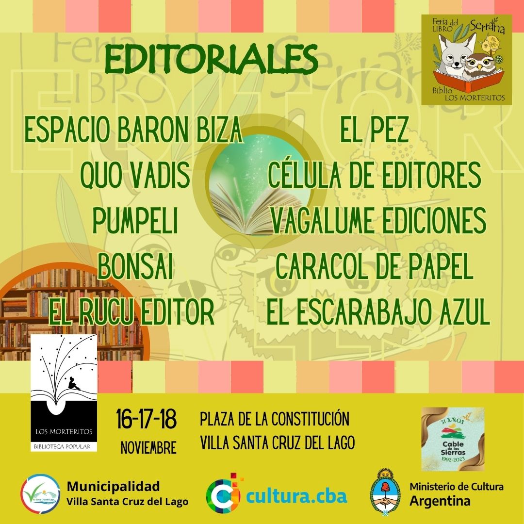 Las editoriales que acompañan este evento son Barón Biza, Quo Vadis, Pumpeli, Bonsai, El ruco editor, El pez, Céluda de editores, Vagalume Ediciones,Caracol de papel, El escarabajo azul.