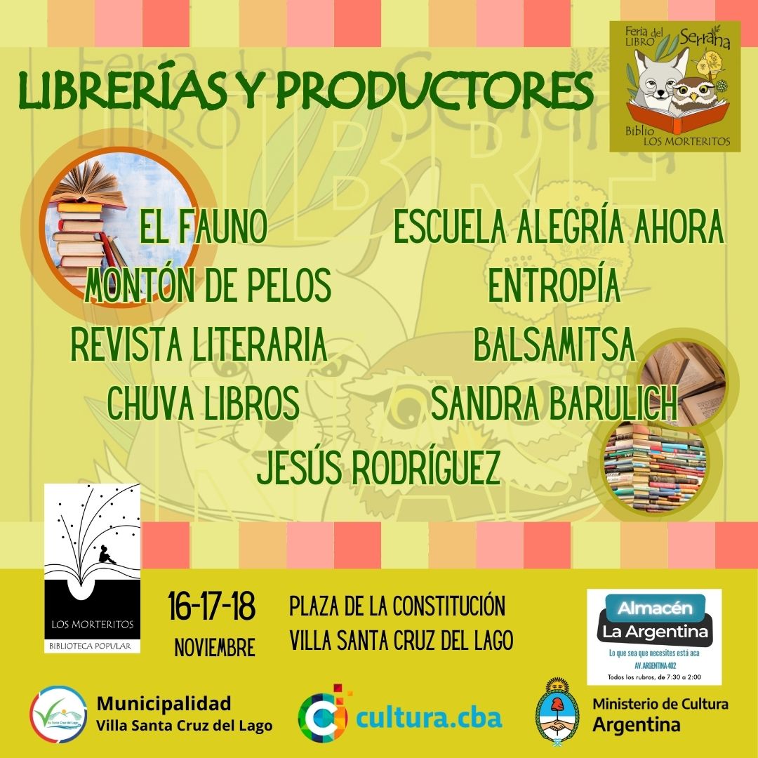 En cuanto a las librerías presentes, son: El Fauno, Montón de pelos, revista literaria, Chuva Libros, Escuela alegría ahora, Jesús Rodríguez, Utopía, Balsamitsa, Sandra Barulich.