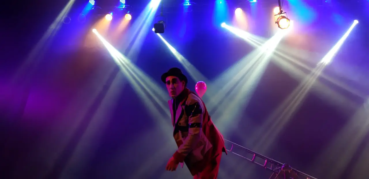 Un payaso en un sube y baja gigante, hace todo lo imaginable, con ese objeto y con su propio corazón que arriesga siempre al vaivén de la vida, nos invita a estar allí y dejar a nuestro propio corazón jugar por un rato, no se priven de esto.