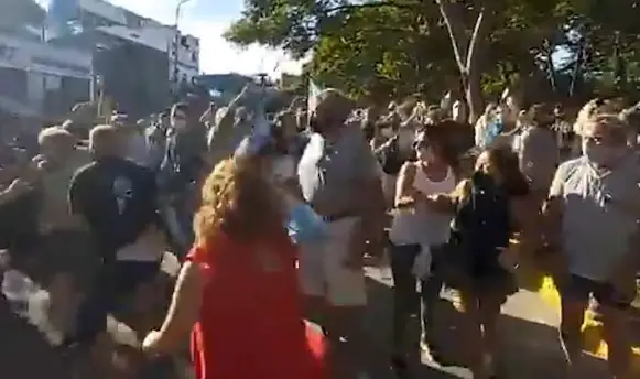 Minutos después, el lugar se volvió escenario de tensión: llegaron militantes para apoyar a Alberto Fernández y se produjeron incidentes con quienes protestaban contra el Gobierno.