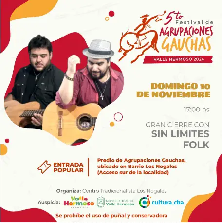 Los grupos musicales invitados son: Tacuara, Tierra Adentro Folk, Nahuel Loyola, Emanuel «El Andariego» Giraudo. El cierre estará a cargo del grupo Sin Límites Folk.