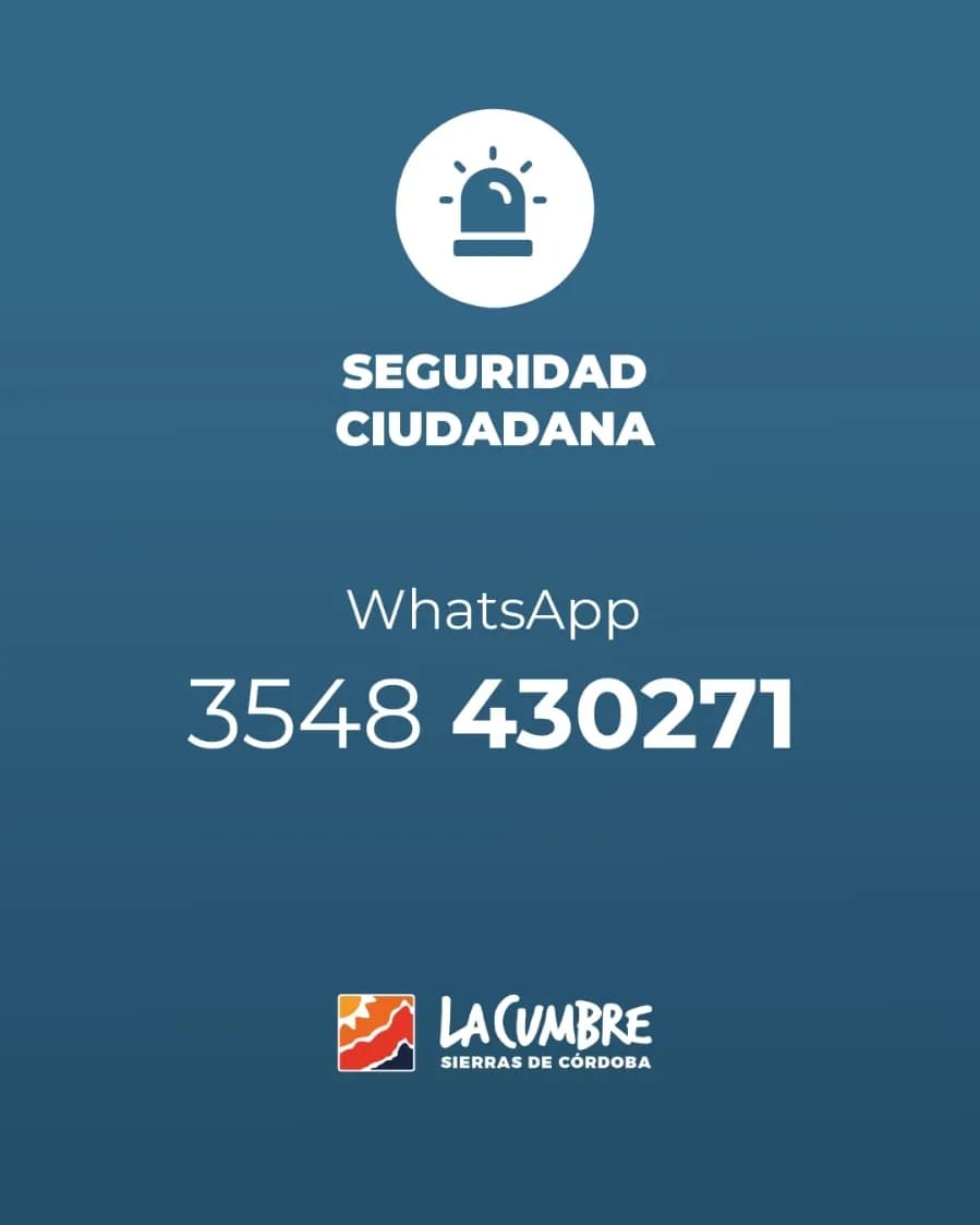 «Lo que hacemos o tenemos no es propiedad de una gestión, sino de todos los vecinos de La Cumbre. Por eso, pedimos que ante cualquier acto de destrozo o vandalismo realices la denuncia correspondiente o te comuniques inmediatamente con la comisaría local o seguridad ciudadana».