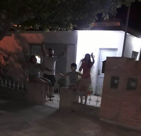 Los vecinos de Sol y Lago, han adoptado una costumbre desde que se encuentran en cuarentena que es la de “reunirse” cada uno desde la puerta de su casa a escuchar canciones y cantar el himno.