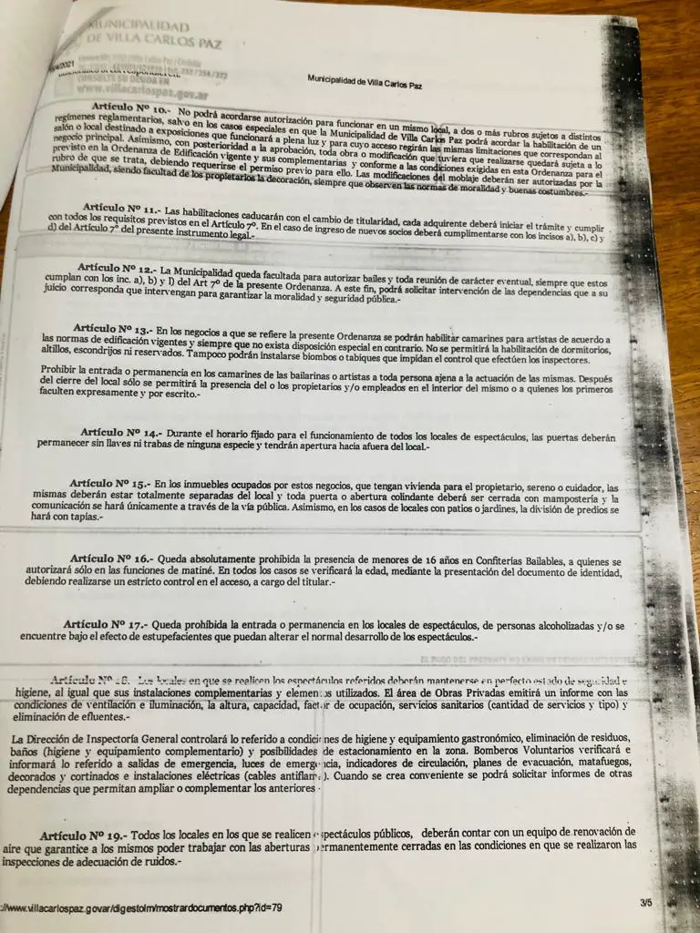 Qué dice la ordenanza 5840 de Carlos Paz sobre espectáculos públicos