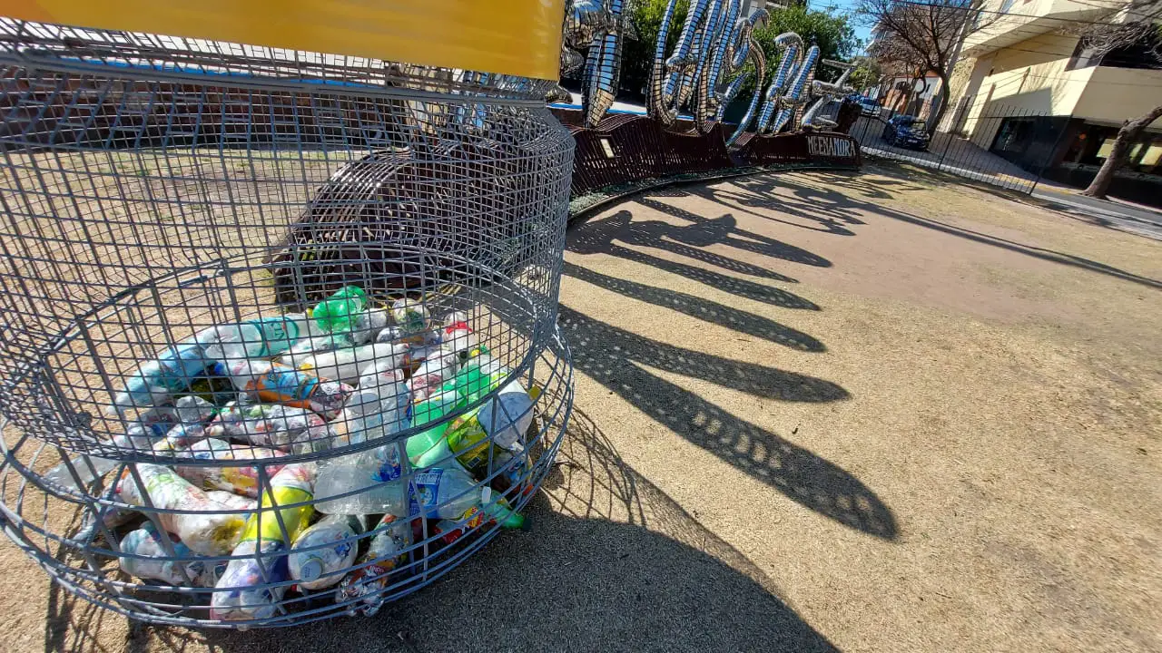 La idea que esta estructura gigante, de 3,30mts. de altura, realizada en malla sima, se llene de botellas de plástico, rellenas a su vez de otros residuos menores, del mismo material… va prendiendo en los pibes.