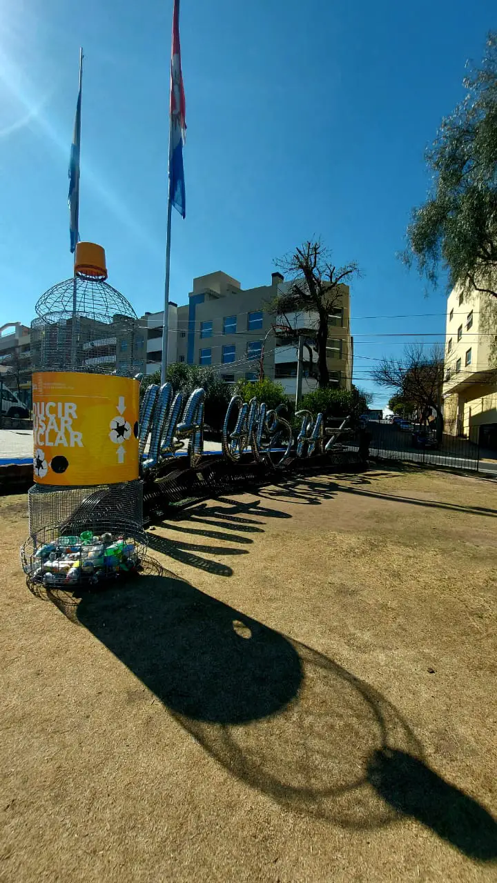 La idea que esta estructura gigante, de 3,30mts. de altura, realizada en malla sima, se llene de botellas de plástico, rellenas a su vez de otros residuos menores, del mismo material… va prendiendo en los pibes.