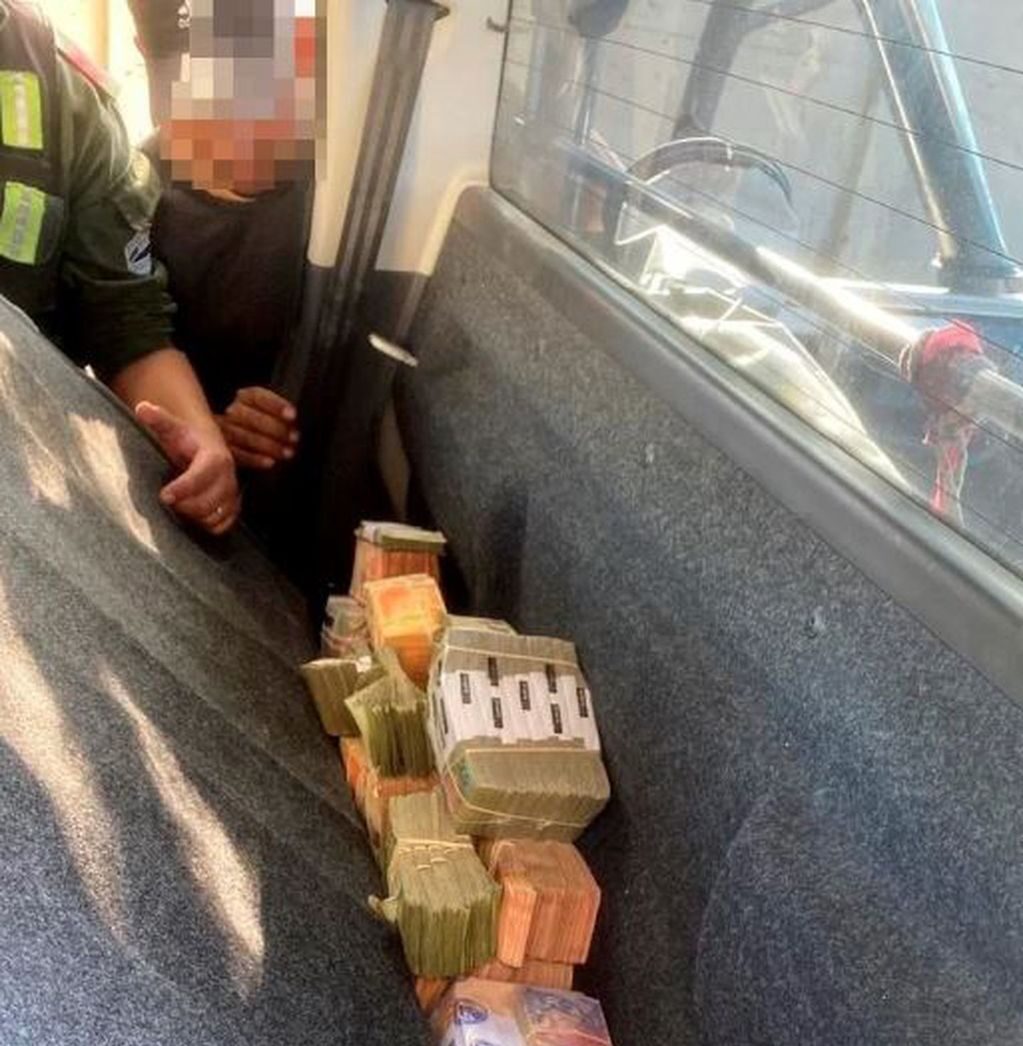 Al continuar con la inspección, los gendarmes hallaron otra bolsa detrás de los asientos traseros: allí había 24.344.000 pesos en efectivo.