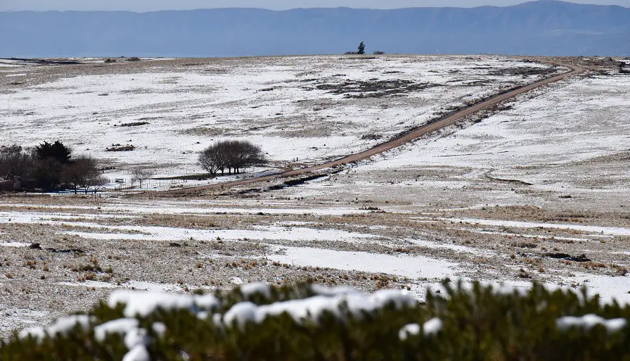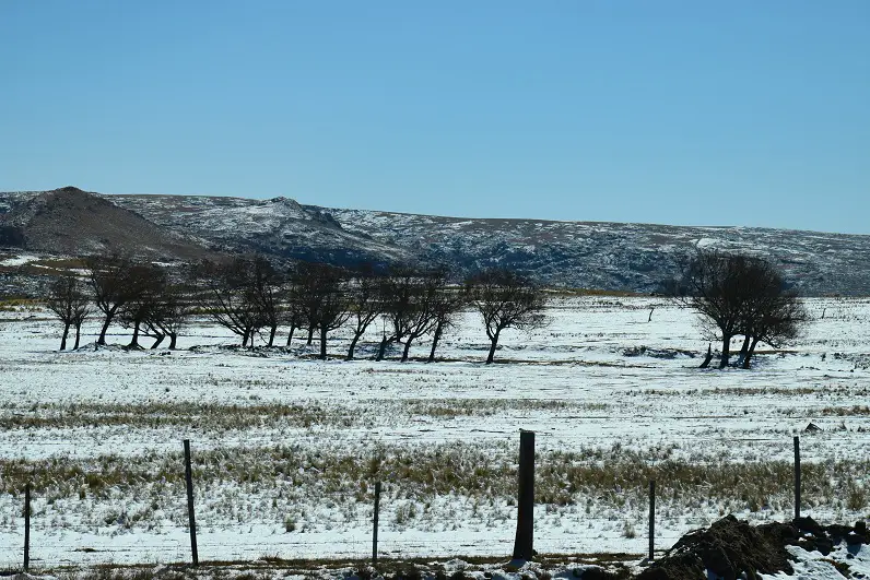 Viejos árboles hoy sin hojas en medio de la ‘nada’ blanca. Cada espacio plano de las estancias, blanco. Algunos caballos y otros pocos bovinos, solitarios en el frío.