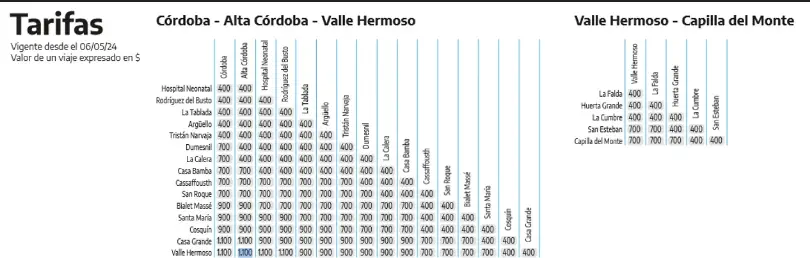 La medida impacta a Córdoba, Amba y otras provincias. El viaje de Córdoba a Valle Hermoso, Punilla, pasará a costar 1100 pesos.