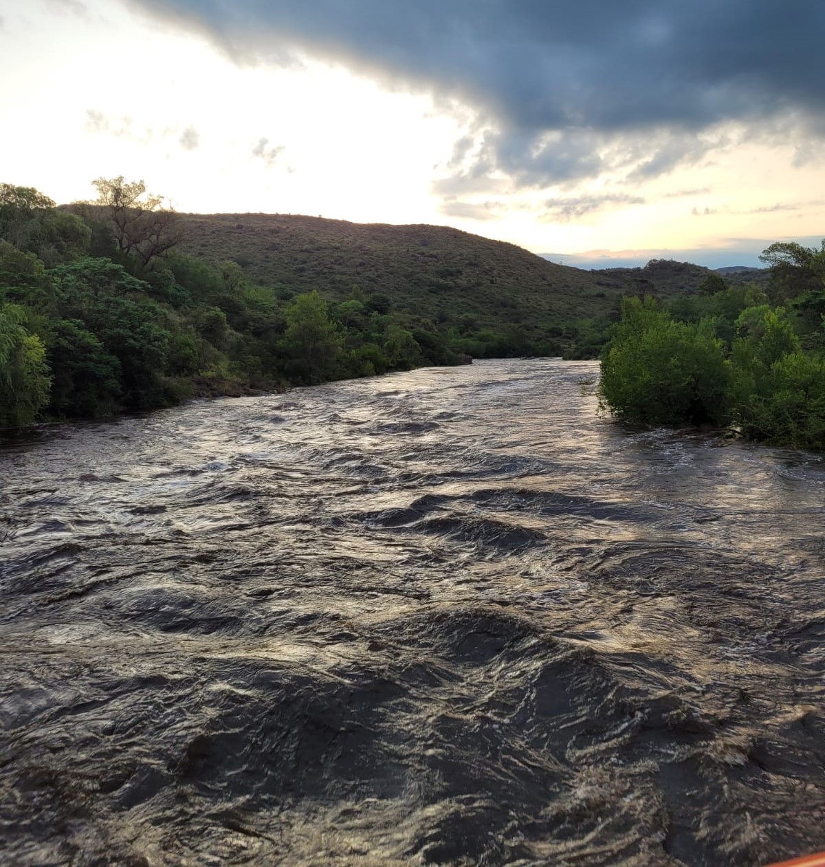 Desde el bar Puentes Amarillos, ubicado a un costado del río, tomaron imágenes de la llegada del gran torrente de agua a Cuesta Blanca.