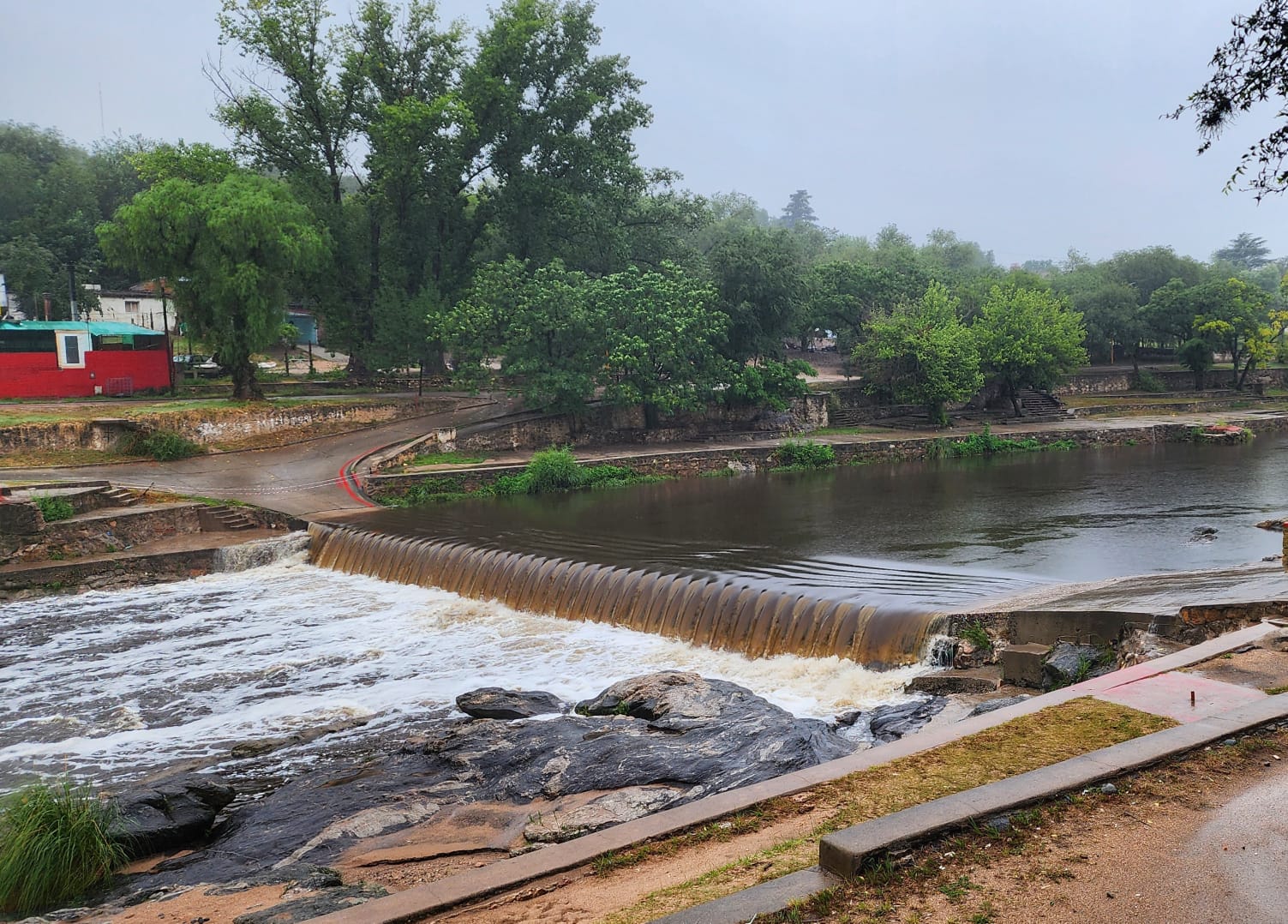 Los niveles de creciente no son tan elevados, 2 metros en el vado de Cuesta Blanca y 1,5 en Carlos Paz, pero el ingreso de agua será constante ya que hasta el momento continúa lloviendo en toda la cuenca.