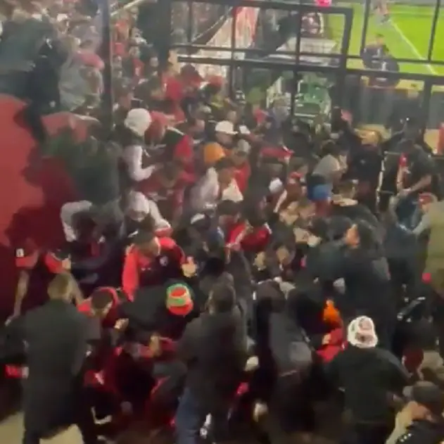 En uno de las imágenes virales es la de decenas de hinchas Leprosos que salieron rápidamente por un pequeño portal debajo de una tribuna popular y, ante las corridas, comenzó la avalancha que de milagro no contó con víctimas fatales ante las pruebas del escalofriante video.
