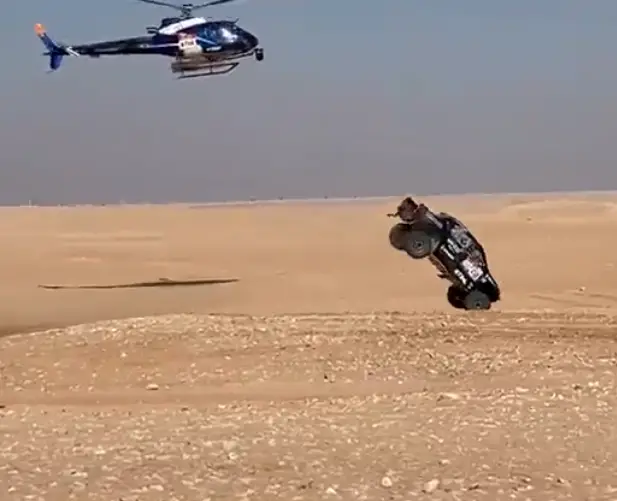 Benediktas Vanagas, piloto de 44 años, sufrió el vuelvo de su Toyota y la rotura total de la misma cuando transitaba a máxima velocidad en una de las huellas del desierto disputando la cuarta etapa de la carrera más dura del mundo.