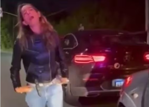 Según lo que se ve en el video al que pudo acceder A24, Celeste Roth estaba visiblemente alcoholizada, empujó a una policía y acusó a Giannina de “romperle todo el auto”.