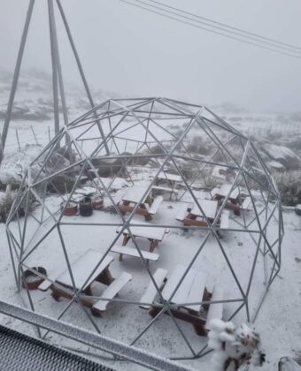 Pipo trabaja en el Hotel La Posta, a orillas del camino de las Altas Cumbres cerca del monumento al Cura Brochero y nos envía estas fotos de la nieve de este sábado.