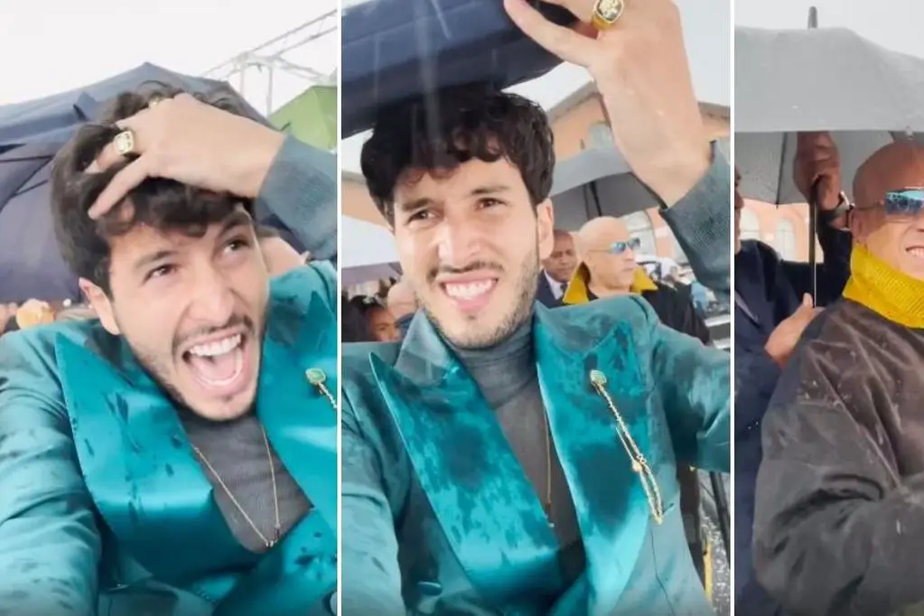 Por su parte, Sebastián Yatra grabó lo que sucedía y se encontró con el actor Vin Diesel a quien le dijo: “Vino Vin a salvarnos”, pero el actor protagonista de “Rápido y Furioso” no entendió bien lo que dijo el cantante y se limitó a sonreír, mientras se resguardaba debajo del paraguas que sostenía un asistente.
