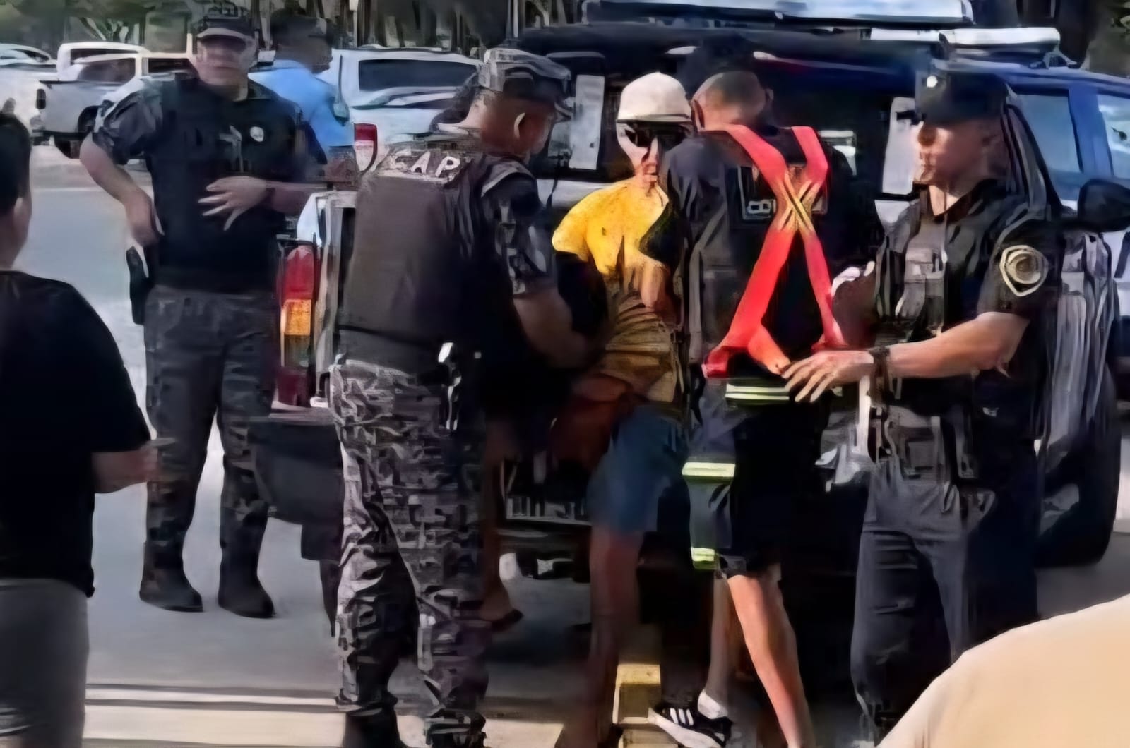 Durante el operativo en Playas de Oro, uno de los vendedores se tornó agresivo, lo que motivó el pedido de apoyo policial. Con la llegada de los móviles, parte del público que se encontraba en el balneario comenzó a tomar partido, generándose agresiones verbales que luego derivaron en ataques contra el personal policial y municipal.