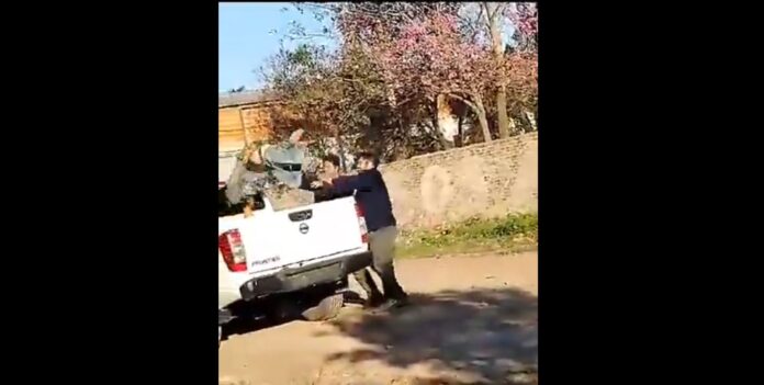 “Este ladrón nos tiene cansado”, expresaron los vecinos mientras veían como dos sujetos arrojaban al delincuente, atado de pies y manos, a la caja de un patrullero.