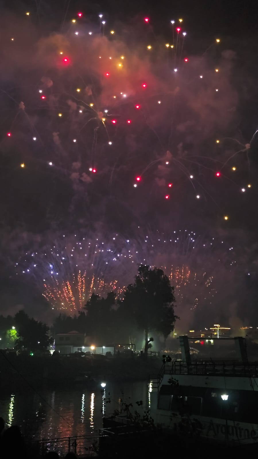 A partir del minuto seis, el despliegue ganó potencia: explosiones más intensas, figuras de gran tamaño y un ritmo sostenido marcaron la segunda etapa del show, que superó ampliamente la duración habitual. Tradicionalmente, el espectáculo se extiende por unos 10 minutos, pero en esta oportunidad alcanzó los 16 minutos, sorprendiendo al público.