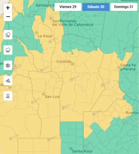 En tanto, el Observatorio Hidro-Meteorológico de Córdoba advirtió que en las zonas más altas de la provincia no se descarta la caída de nieve durante el domingo.