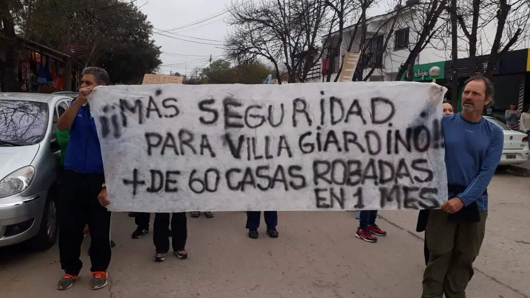 Vecinos agrupados de Villa Giardino realizaron una protesta en la mañana de este sábado sobre la ruta 38 en el paso de esa localidad, asegurando que viven una verdadero ola de inseguridad.