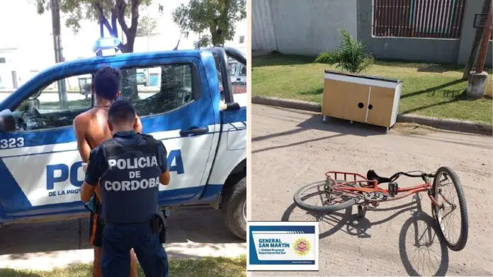 El aprehendido había robado un mueble bajomesada del interior de un domicilio y se la llevaba a bordo de su bicicleta, hasta que fue sorprendido por los efectivos policiales y huyó corriendo.