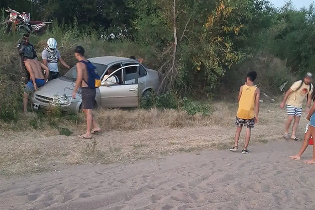 Un hombre a bordo de un Chevrolet Corsa terminó incrustado en una cuneta en la playa El Arenero sobre el río de Villa María luego de maniobrar de forma imprudente.
